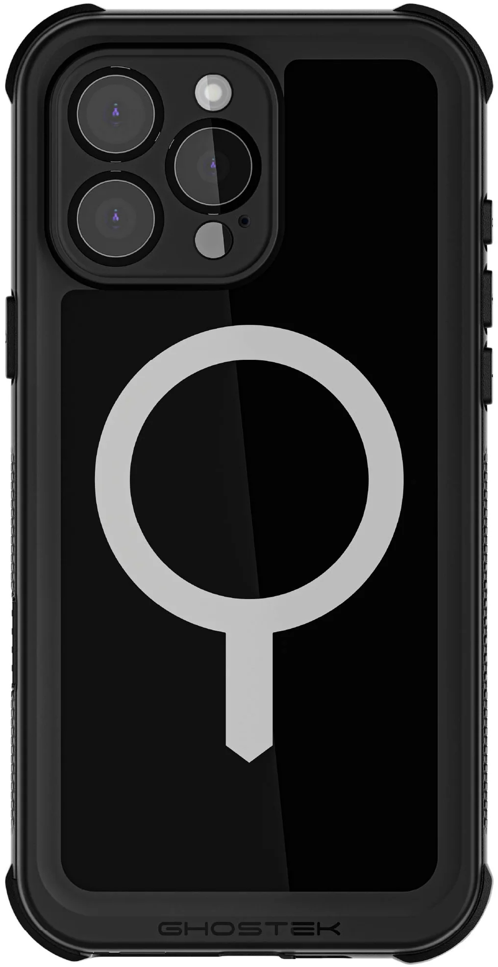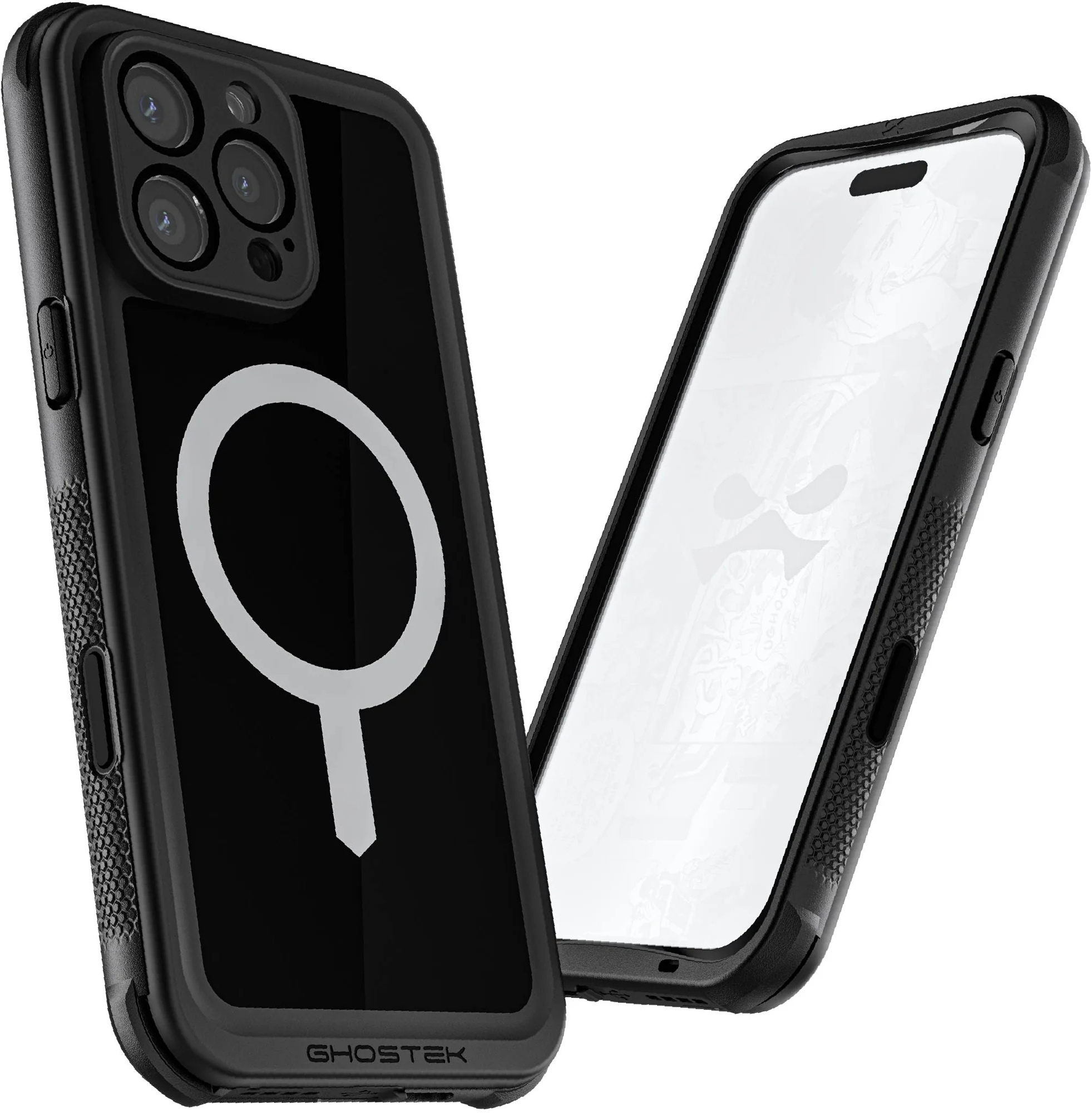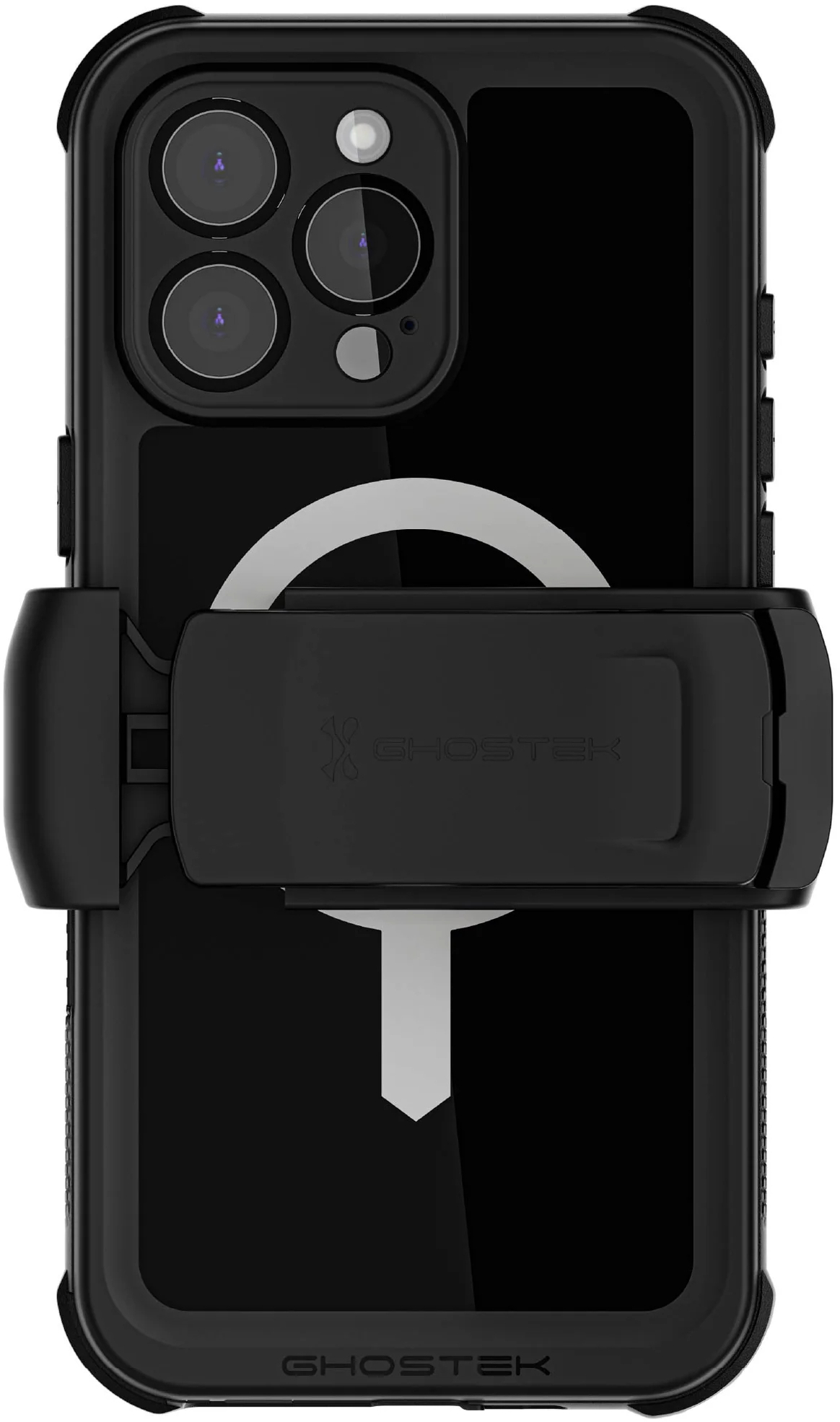 De case is compatible met het MagSafe ecosysteem van Apple en Wireless charging en wordt geleverd met een universeel draaibare riemclip.