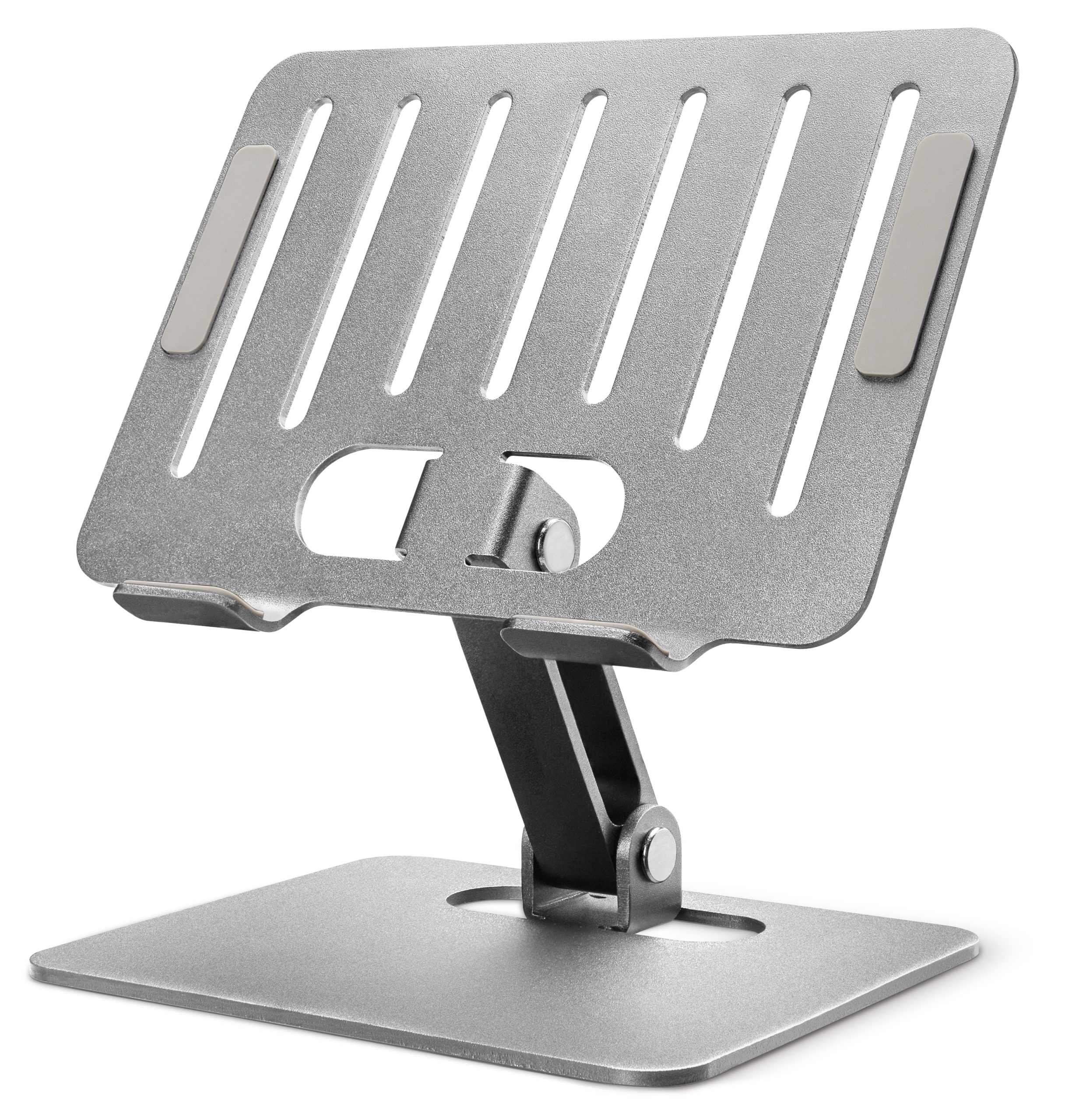 Met de Mobilize Foldable Aluminium Holder heb je altijd een vaste plek voor en goed zicht op je tablet of E-reader. Dankzij de twee draaipunten is het perfect in te stellen voor de ideale kijkhoek. Of je nu een boek leest, naar je favoriete content kijkt of aan het videobellen bent, deze houder zorgt dat je het ongestoord en ergonomisch verantwoord kan doen. De op strategische plekken geplaatste antislip materiaal en aluminium frame zorgen ervoor dat de houder en jouw toestel veilig blijven staan. Het aluminium en de gleuven in het aluminium zorgen voor optimale koeling van jouw tablet of E-reader zo levert jouw apparaat altijd de maximale prestatie. Omdat de houder opvouwbaar is, is het een erg handige houder voor onderweg.