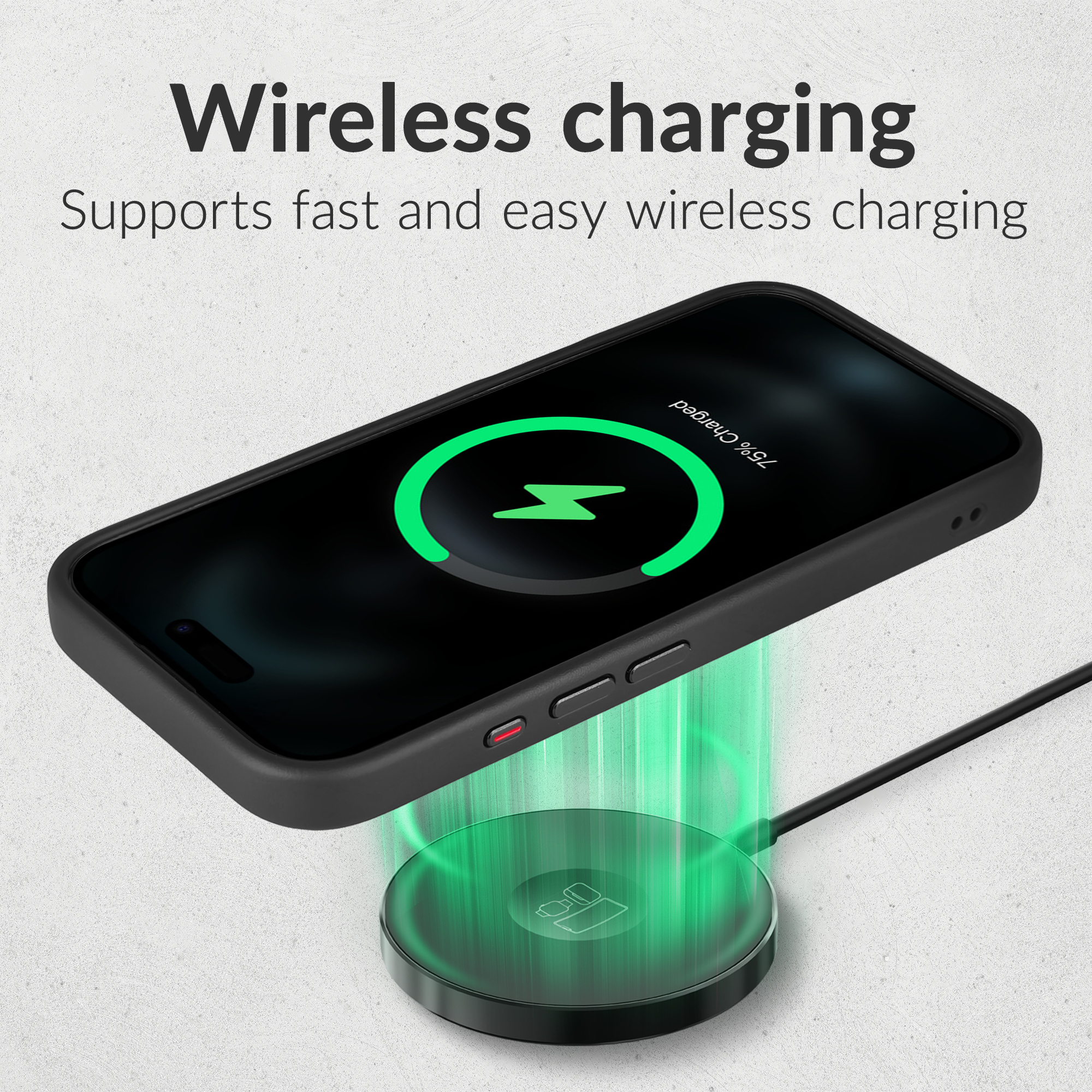 De case is volledig compatibel met MagSafe-technologie, waardoor draadloos opladen en het gebruik van MagSafe-accessoires eenvoudig blijft. Het hoesje heeft ook een anti-kraslaag die ervoor zorgt dat je telefoon er onberispelijk blijft uitzien. Nauwkeurige uitsparingen zorgen voor gemakkelijke toegang tot alle poorten en knoppen.