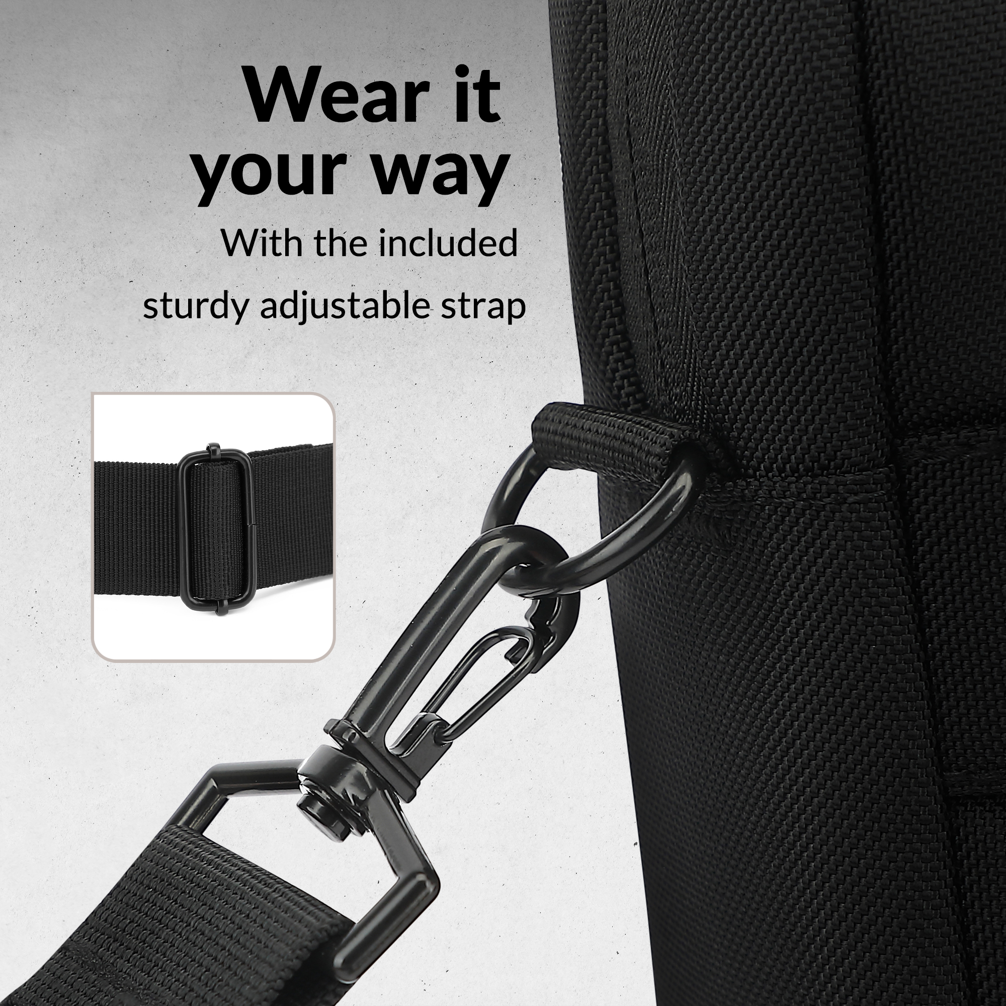 Je kunt de tas zowel met als zonder de afneembare schouderriem dragen, wat zorgt voor extra flexibiliteit en comfort, afhankelijk van jouw voorkeur.