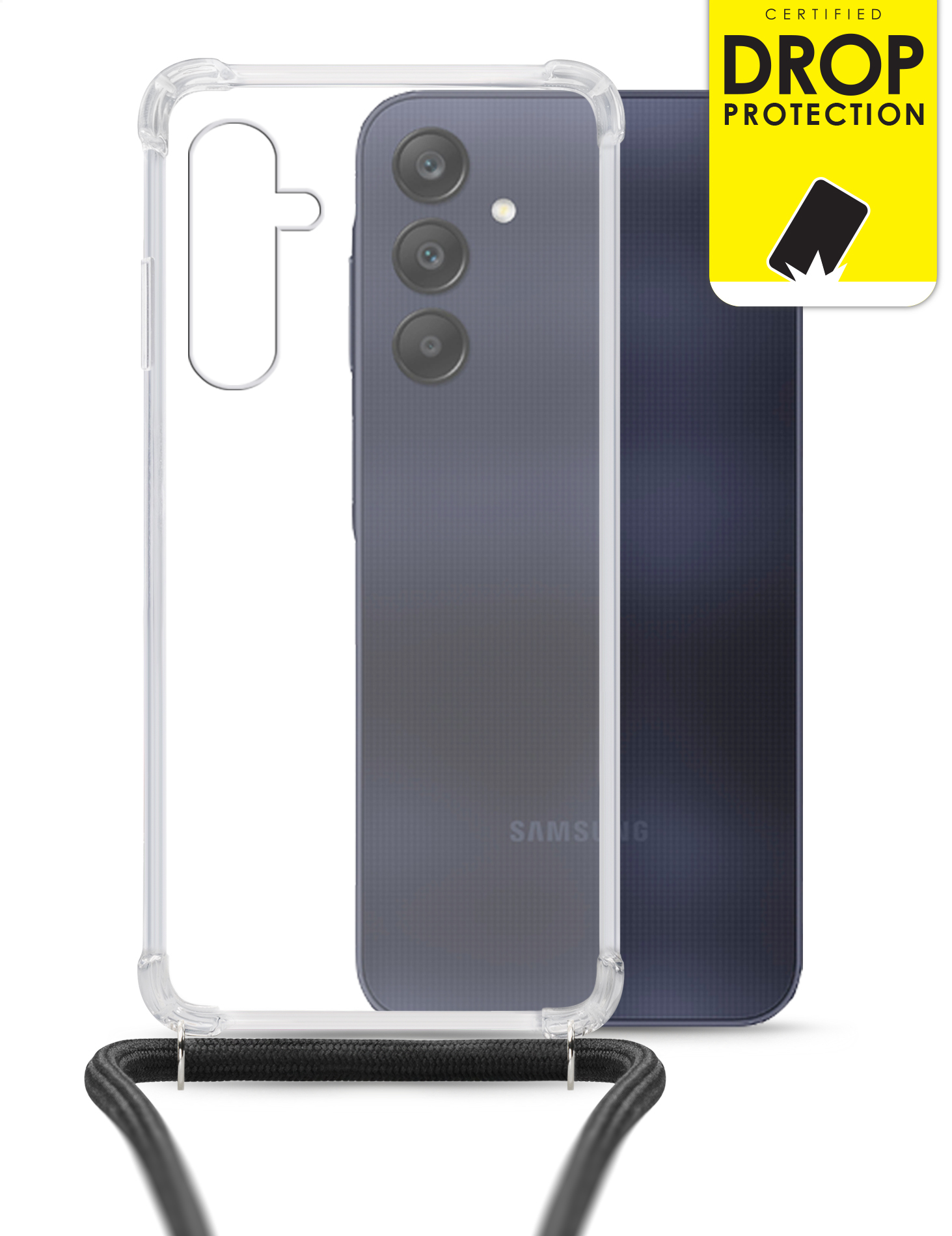 • Transparante case incl. strap