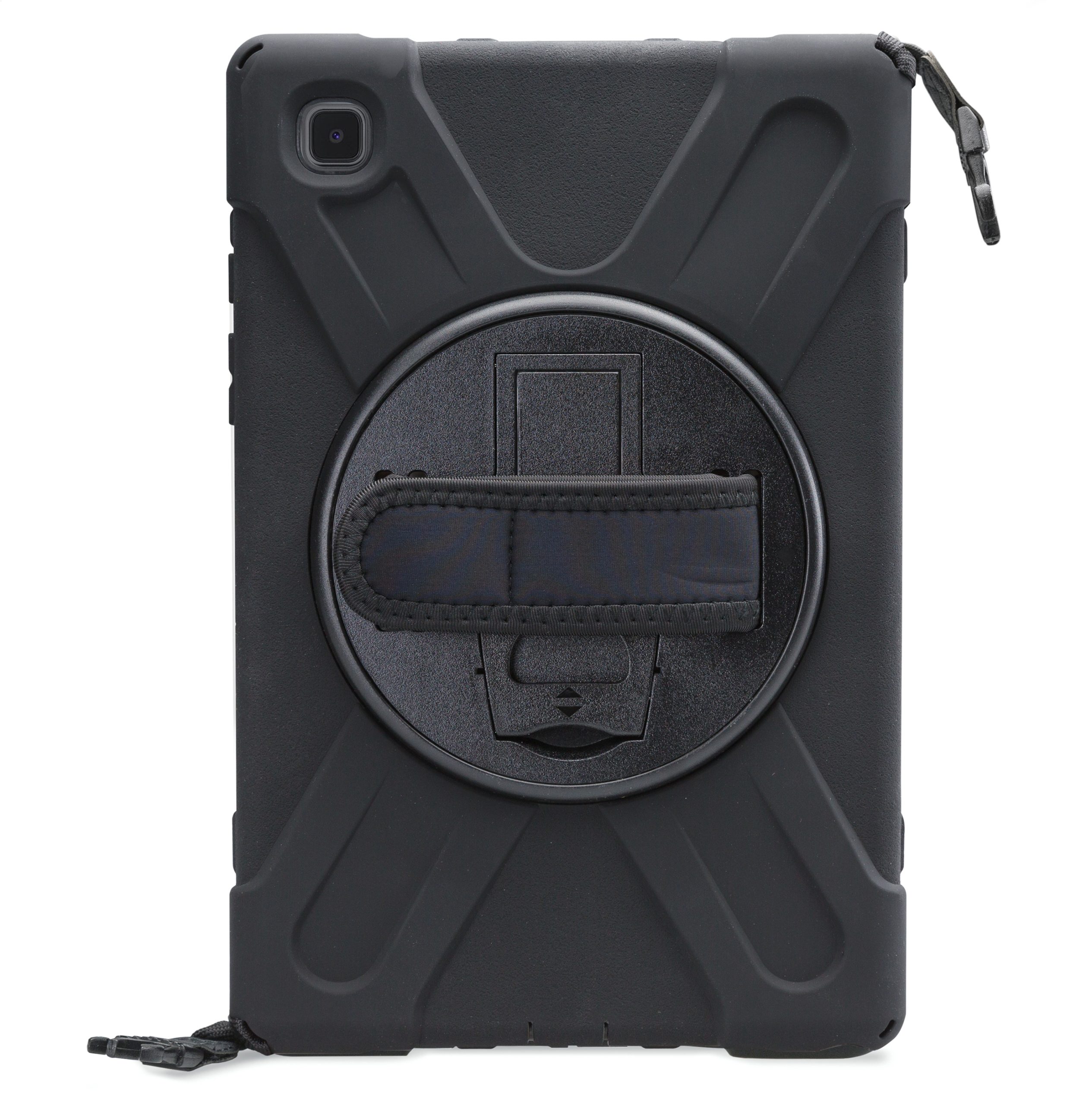 Met de Xccess Survivor All-round Case bent u van alle gemakken voorzien. De case is gemaakt uit een basis van hard plastic, met een rubberen afwerking. Zo vangt de case eventuele klappen en stoten op als de tablet per ongeluk valt. Gelukkig zal dit niet snel gebeuren, dankzij de Hand Strap op de achterzijde. Deze strap zorgt ervoor dat u de tablet goed vast kunt houden. Middels het klittenband is de strap goed strak te trekken om elke hand. Deze strap bevindt zich op een 360° draaibare schijf, zodat u de tablet in zowel landscape als portrait stand wilt gebruiken. Daarnaast kunt u de tablet als schoudertas dragen dankzij het bijgeleverde koord. Achter de Hand Strap is bovendien nog een handige standaard te vinden, zodat u comfortabel naar video's kunt kijken.